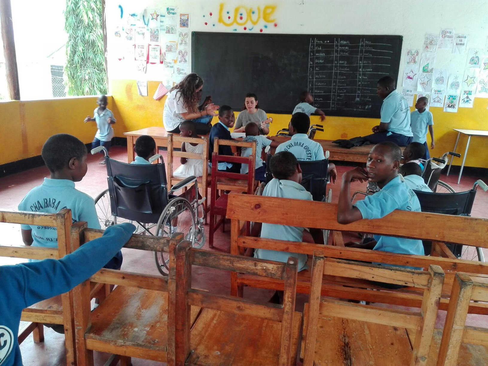 Le nostre giornate al centro sono semplici. Ogni mattino al nostro arrivo Edison, Joshua, Freddy e Pili trovano sempre il modo di sgattaiolare via dalla colazione per venirci incontro a braccia aperte, poi, dopo i saluti, Wambura e Faith intonano il canto e si parte con il momento di preghiera tutti assieme. A metà mattinata è ora della riabilitazione e delle attività, che continuano tutta la giornata, così tra giochi, alfabeto, disegni, canti e balli arriva l’ora di tornare a casa. È la nostra prima esperienza con i disabili, siamo ancora all’inizio e stiamo imparando a conoscerli, non sempre è facile, abbiamo ancora tanto da imparare, ma questi bambini ogni giorno ci insegnano a dare peso ai piccoli gesti, al tono della voce, alle espressioni del viso. Ci ricordano quanto oltre al fare qualcosa per gli altri, a volte basti semplicemente stare insieme e esserci, per un abbraccio, un battito di mani, una risata, un canto, una corsa, una spinta in altalena o un semplice sorriso. Insomma, è forse vero che a volte non servono molte parole perché è incredibile quanto ci stiano dando questi bambini con i loro semplici sorrisi.