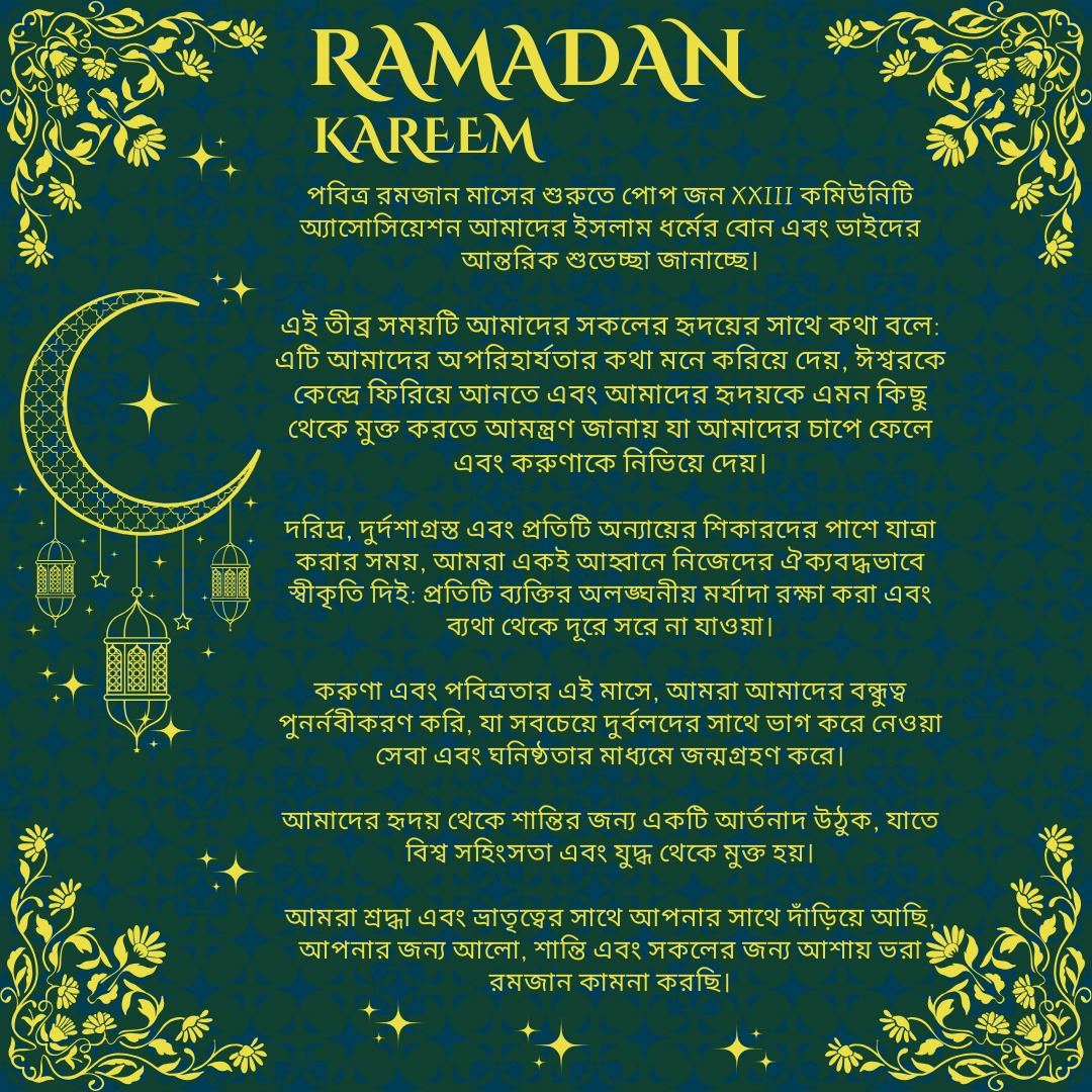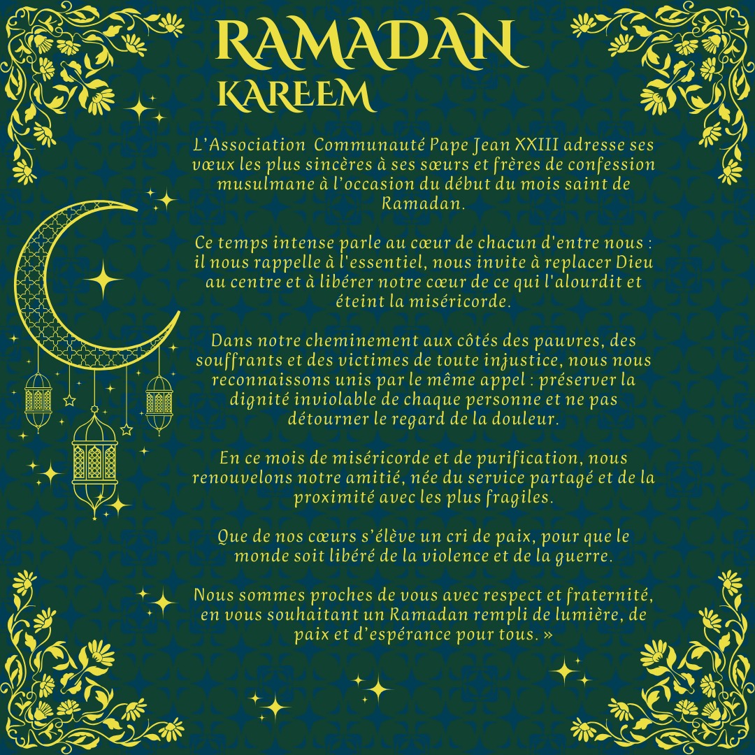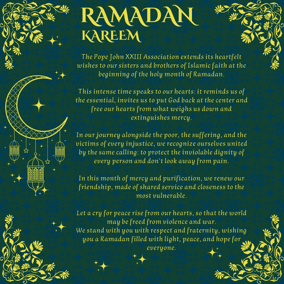 L’Associazione Comunità Papa Giovanni XXIII rivolge i suoi più sinceri auguri alle sorelle e ai fratelli di fede islamica all’inizio del mese santo di Ramadan.